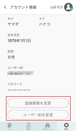 [登録情報を変更]または[ユーザーIDを変更]をタップして、編集します。