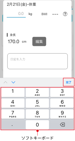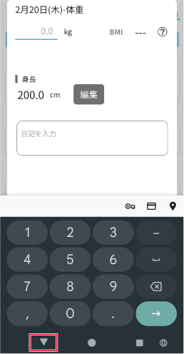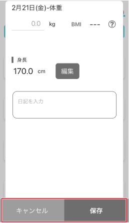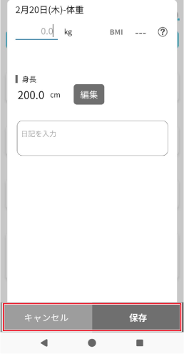 血圧、体重、血糖値などの健康記録やその目標値を入力した際、保存、キャンセルボタンがソフトキーボードに隠れて、表示されていない場合があります。その場合はソフトキーボードを閉じるか、画面を上方向にスワイプすることで表示されます。